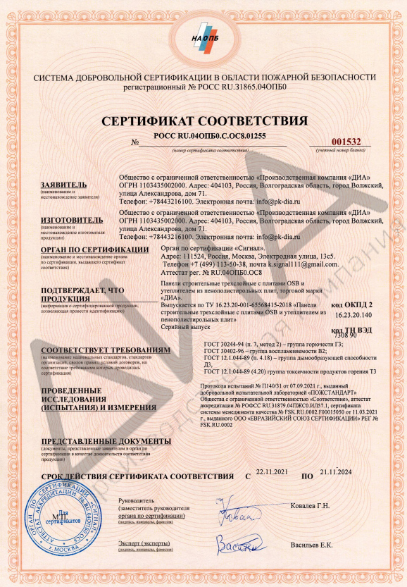 Сертификаты на СИП панели
